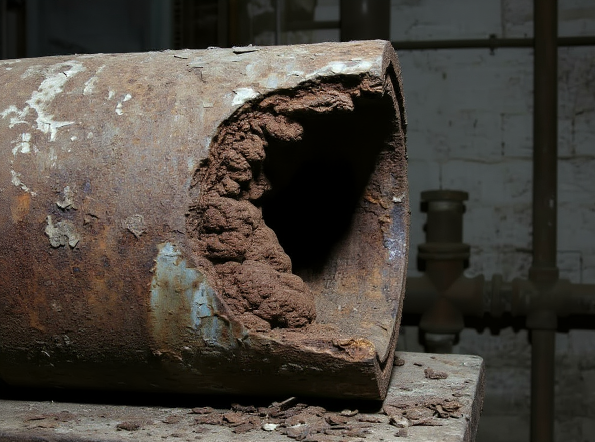 Cast iron pipes corrode from the inside out, leading to rust buildup, reduced flow capacity, and eventual pipe collapse.